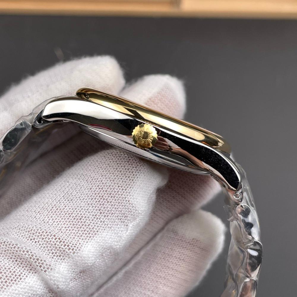 تصميمها الثنائي اللون يبرز المظهر الكلاسيكي الفاخر على المعصم.