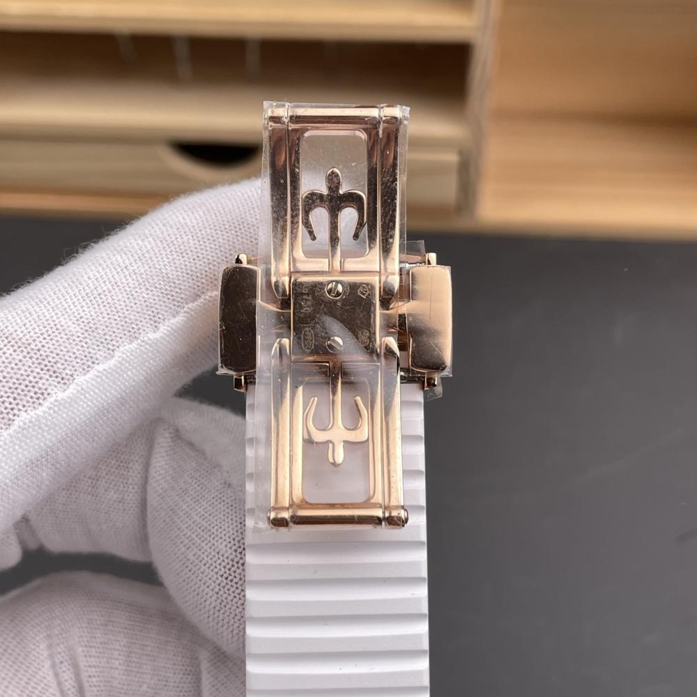تفاصيل الروز غولد مع المينا الأبيض تمنح الساعة حضورًا راقيًا وجاذبية لا تُقاوم.