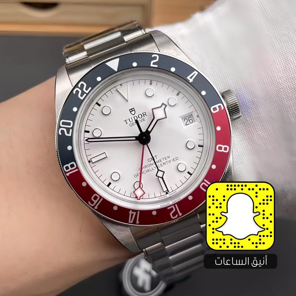 المينا: مينا أبيض بتفاصيل سوداء وعقرب GMT أحمر