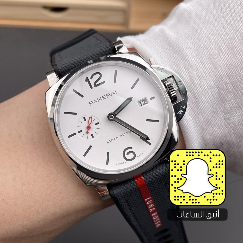 المينا: مينا أبيض ناعم بعقارب سوداء وعداد ثوانٍ صغير بلون أحمر