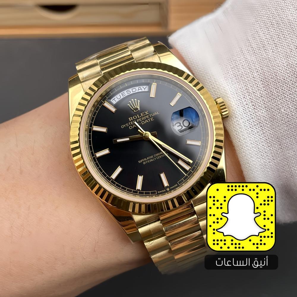 تصميم كلاسيكي فخم يجمع بين هيبة اللون الذهبي وأناقة المينا الأسود بتفاصيل راقية وحضور قوي على المعصم.