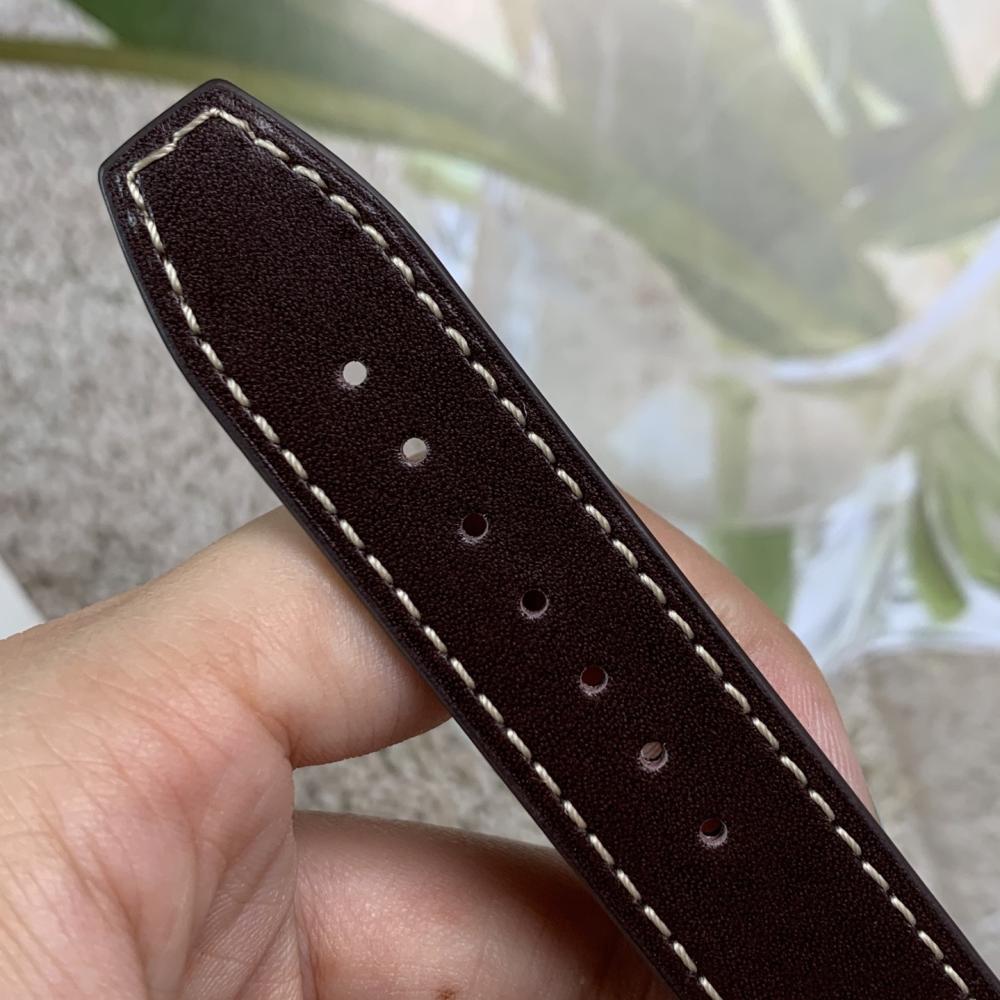 السوار: جلد بني فاخر بخياطة بيضاء أنيقة