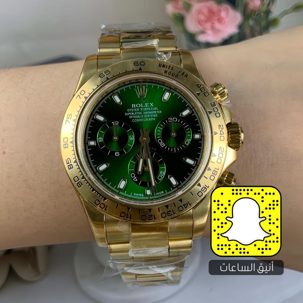المينا: أخضر لامع مع ثلاث عدادات سوداء لإبراز وظيفة الكرونوغراف