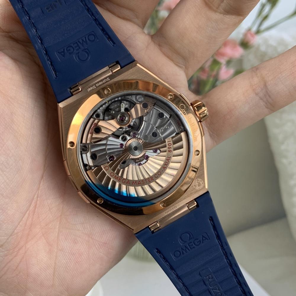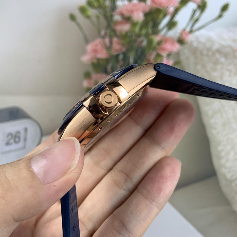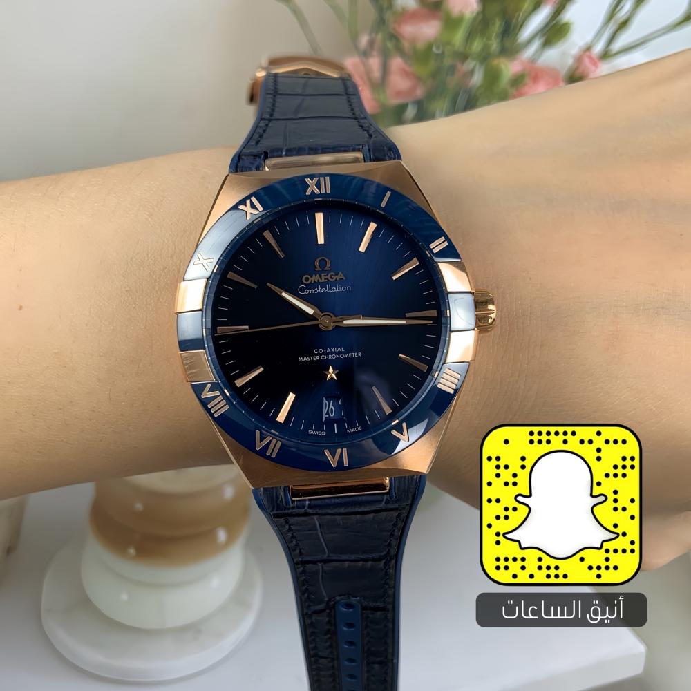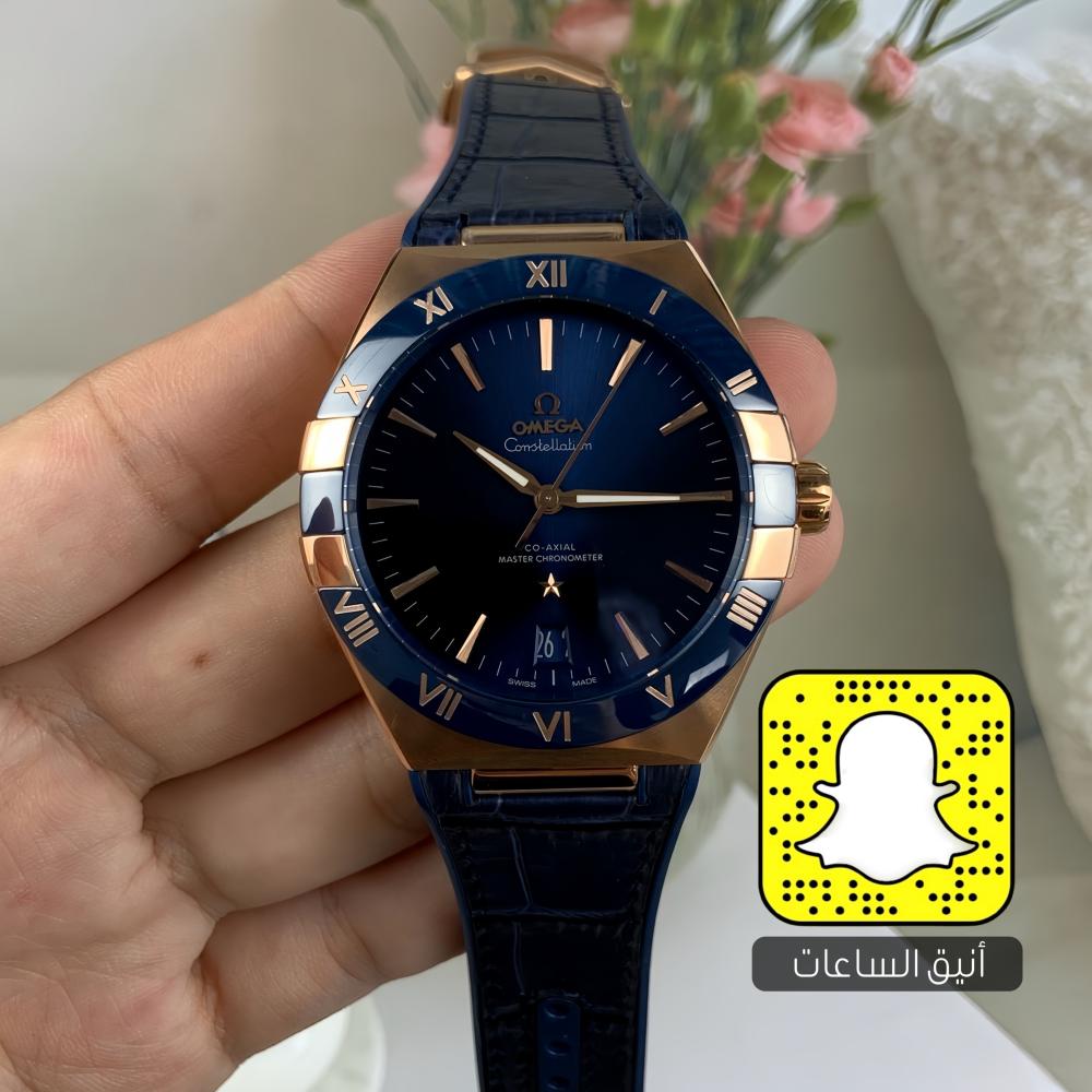 المينا: أزرق كحلي لامع بتصميم بسيط وأنيق مع مؤشرات وعقارب بلون روز قولد