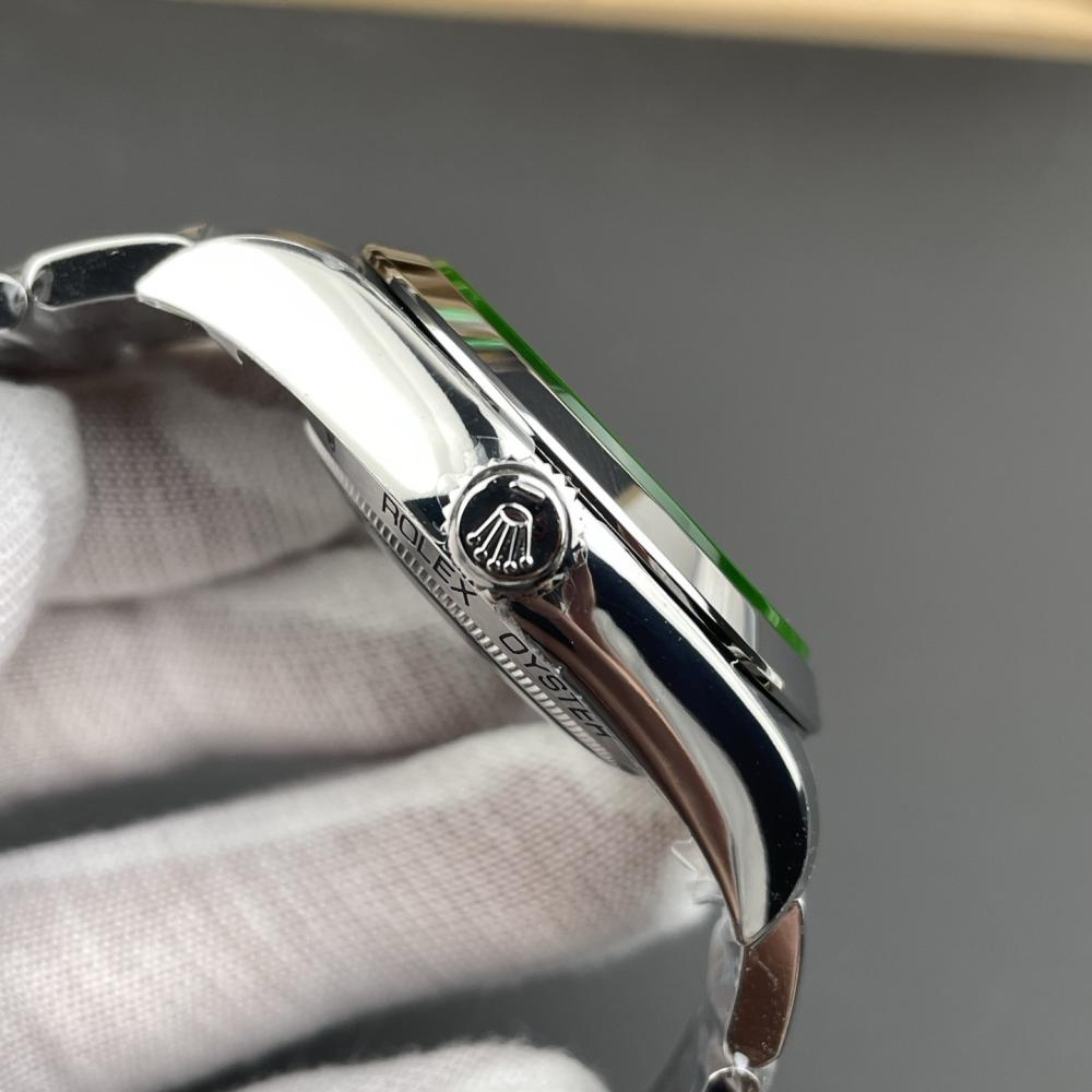 الزجاج الأخضر يمنح الساعة شخصية مميزة لا تشبه أي موديل آخر.