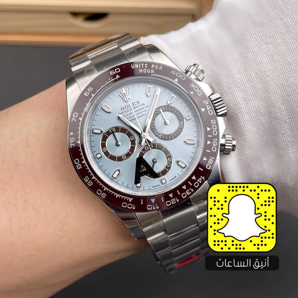 المينا: أزرق فاتح (Pale Blue) مع عدادات كرونوغراف باللون البني