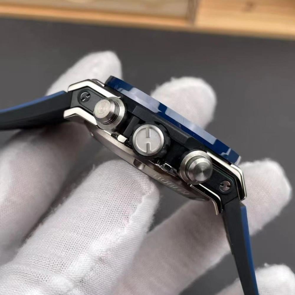 الإطار السيراميكي الأزرق يمنح الساعة حضورًا قويًا وفريدًا على المعصم.