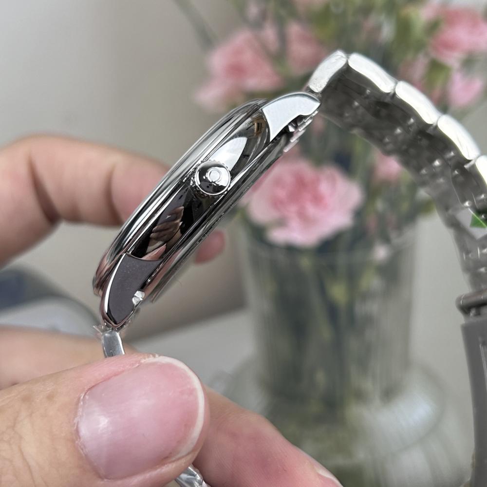 المينا: فضي كلاسيكي بلمسة لامعة مع أرقام رومانية أنيقة