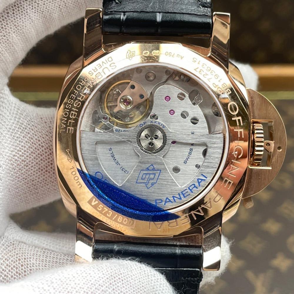 تصميم فخم يجمع بين شخصية بانيراي القوية وأناقة الروز قولد لمحبي الساعات الجريئة والفاخرة, قطعة لافتة بتفاصيل دقيقة تمنح حضورًا راقيًا على المعصم.