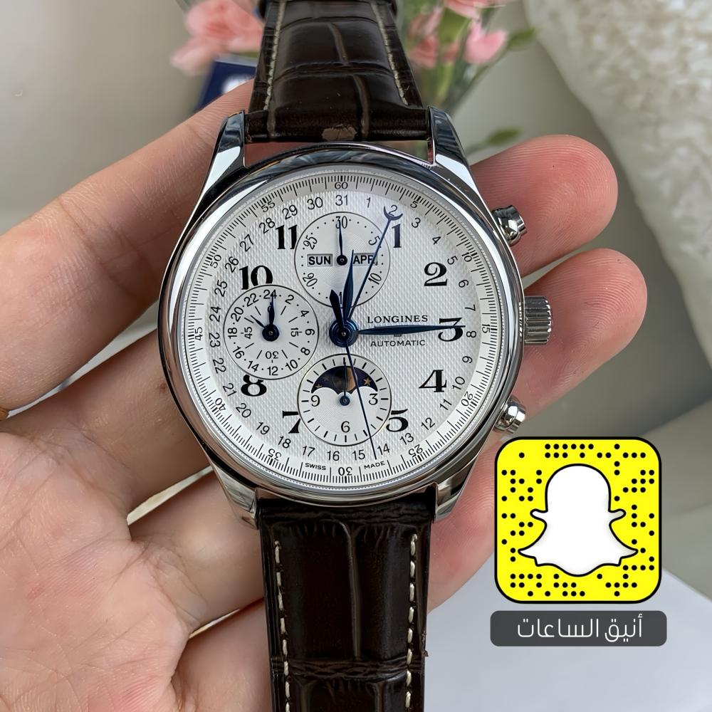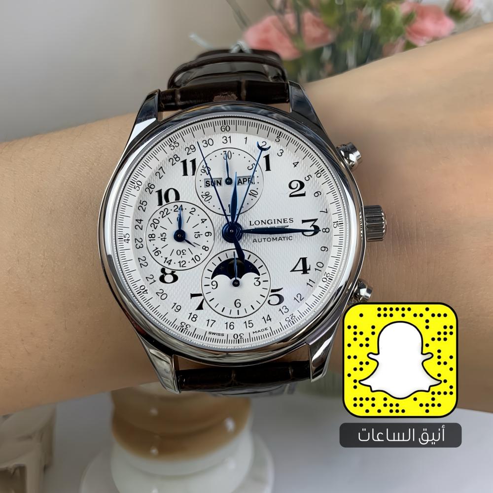 المينا: أبيض مزخرف بتفاصيل كلاسيكية مع عدادات متعددة تشمل عرض التاريخ، اليوم، الشهر، وميزة طور القمر بشكل فاخر